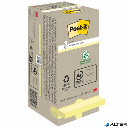 Öntapadó jegyzettömb, "Z", 76x76 mm, 16x100 lap, környezetbarát, 3M POSTIT, sárga