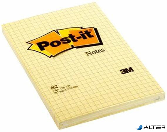 Öntapadó jegyzettömb, 102x152 mm, 100 lap, kockás, 3M POSTIT, sárga