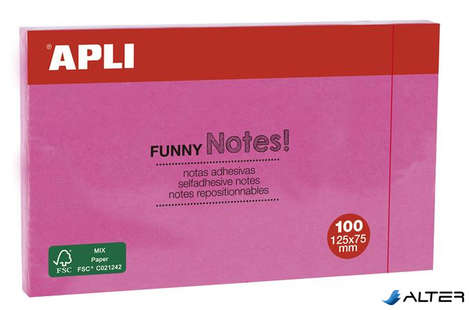 Öntapadó jegyzettömb, 125x75 mm, 100 lap, APLI "Funny", pink