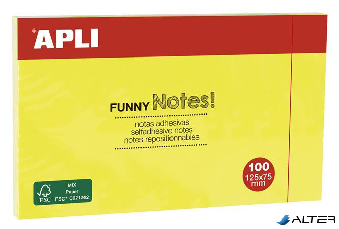 Öntapadó jegyzettömb, 125x75 mm, 100 lap, APLI "Funny", sárga