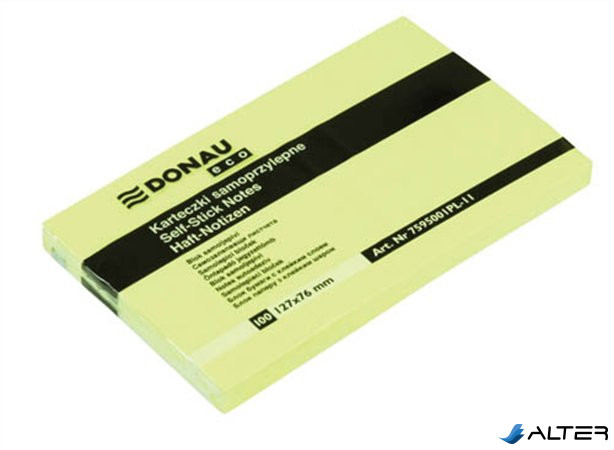 Öntapadó jegyzettömb, 127x76mm, 100 lap, DONAU 'ECO', sárga