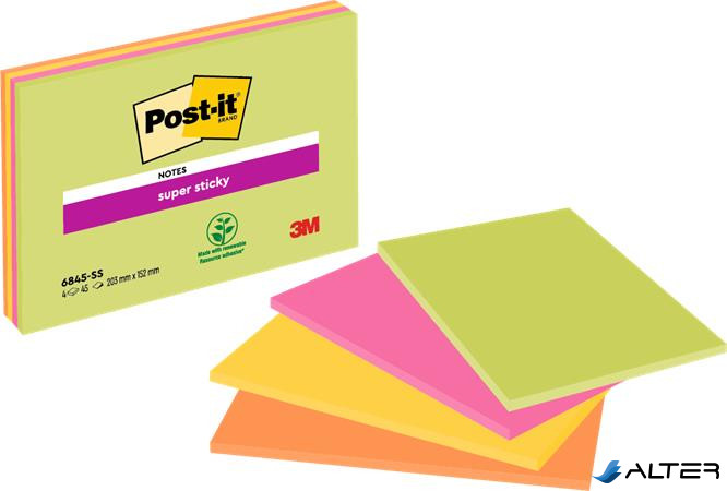 Öntapadó jegyzettömb, 203x152 mm, 4x45 lap, 3M POSTIT 'Super Sticky', vegyes színek