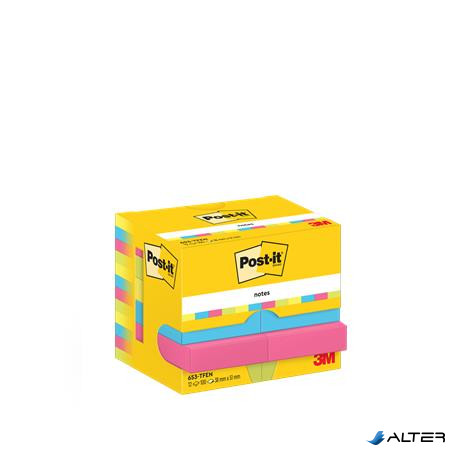 Öntapadó jegyzettömb, 38x51 mm, 12x100 lap, 3M POSTIT "Energetic", vegyes színek