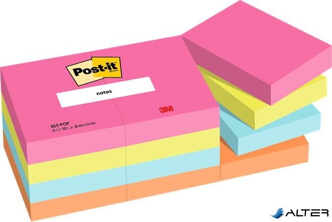 Öntapadó jegyzettömb, 38x51 mm, 12x100 lap, 3M POSTIT "Poptimistic", vegyes színek