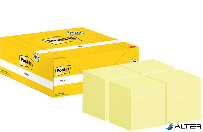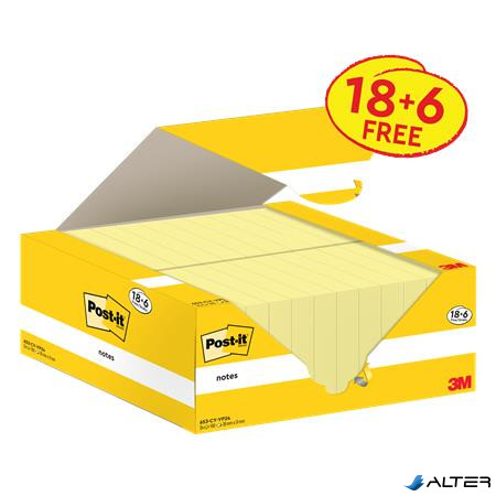 Öntapadó jegyzettömb, 38x51 mm, 18+6x100 lap, 3M POSTIT, kanári sárga