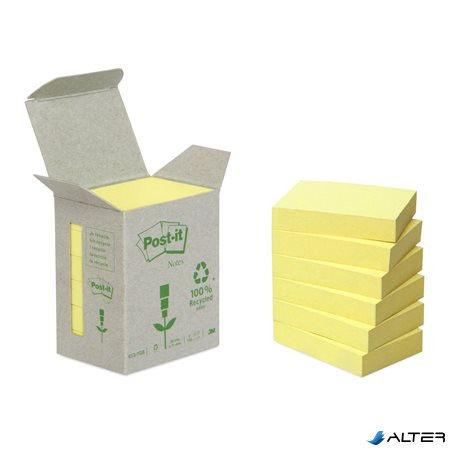 Öntapadó jegyzettömb, 38x51 mm, 6x100 lap, környezetbarát, 3M POSTIT, sárga