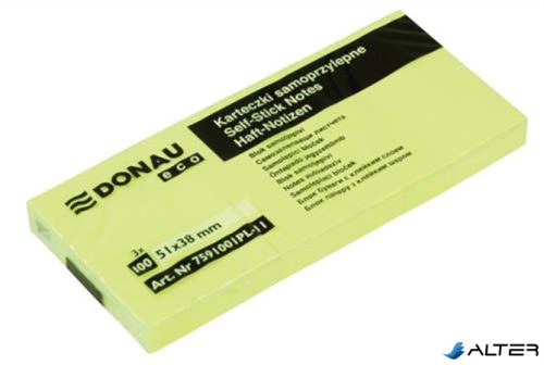 Öntapadó jegyzettömb, 51x38mm, 3x100 lap, DONAU 'ECO', sárga