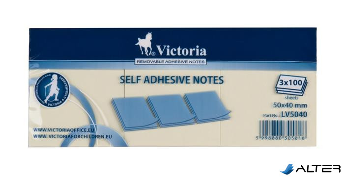 Öntapadó jegyzettömb, 50x40 mm, 100 lap, VICTORIA OFFICE, sárga