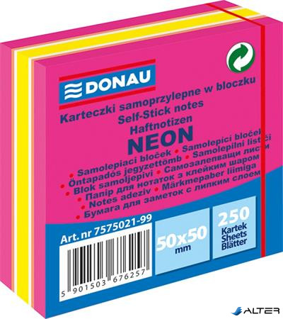 Öntapadó jegyzettömb, 50x50 mm, 250 lap, DONAU, neon rózsaszín