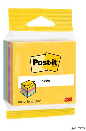 Öntapadó jegyzettömb, 51x51 mm, 400 lap, bliszteres, 3M POSTIT, ultra színek
