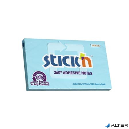 Öntapadó jegyzettömb, 76x127 mm, 100 lap, STICK N „360°”, kék