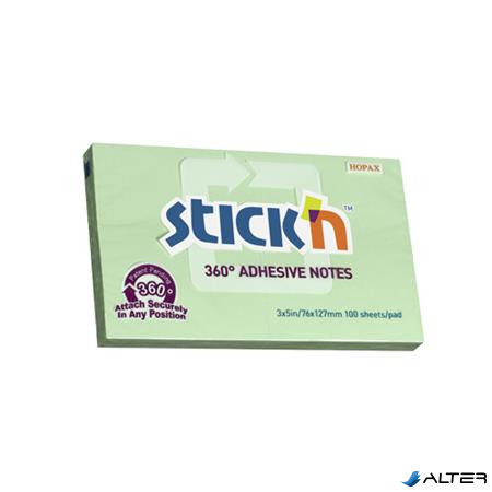 Öntapadó jegyzettömb, 76x127 mm, 100 lap, STICK N „360°, zöld