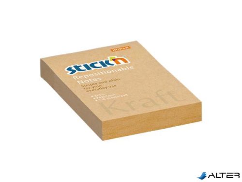 Öntapadó jegyzettömb, 76x51 mm, 100 lap, STICK N "Kraft Notes", barna