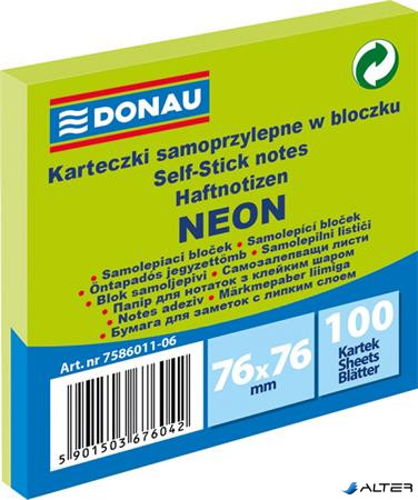 Öntapadó jegyzettömb, 76x76 mm, 100 lap, DONAU, neon zöld
