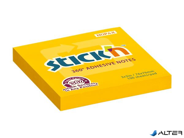 Öntapadó jegyzettömb, 76x76 mm, 100 lap, STICK N „360°, narancs