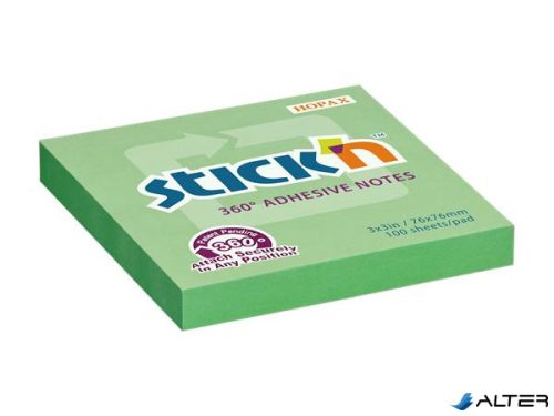 Öntapadó jegyzettömb, 76x76 mm, 100 lap, STICK N „360°, zöld