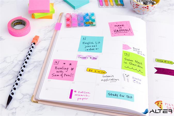 -színes lapokból álló, extra nagy kiszerelés, így sokkal több jegyzetlapot kínál, mint a normál csomagok