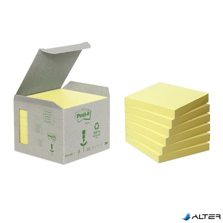 Öntapadó jegyzettömb, 76x76 mm, 6x100 lap, környezetbarát, 3M POSTIT, sárga