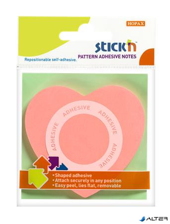 Öntapadó jegyzettömb, szív alakú, 70x70 mm, 50 lap, STICK N, rózsaszín