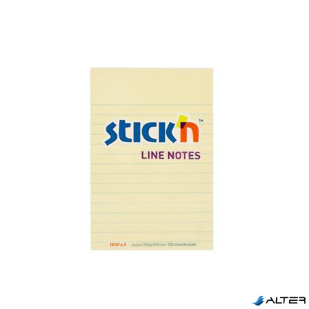 Öntapadó jegyzettömb, vonalas, 152x101 mm, 100 lap, STICK N, pasztellsárga