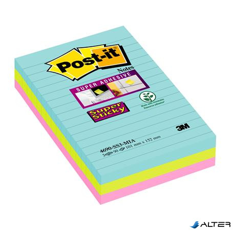 Öntapadó jegyzettömb, vonalas, 3x90 lap, 101x152 mm, 3M POSTIT "Super Sticky Cosmic", vegyes színek