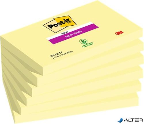 Öntapadó jegyzettömb csomag, 76x127 mm, 6x90 lap, 3M POSTIT 'Super Sticky', kanári sárga