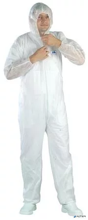 Overál, egyszer használatos, polipropilén, kapucnis, XL méret "Tidy", fehér
