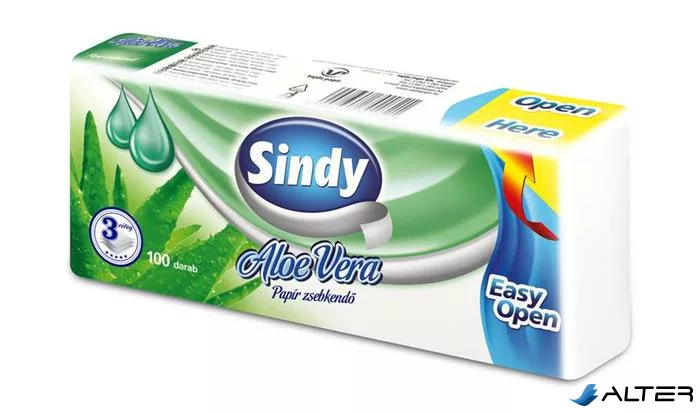 Papír zsebkendő, 3 rétegű, 100 db, 'Sindy', aloe vera