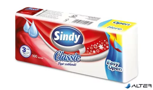 Papír zsebkendő, 3 rétegű, 100 db, 'Sindy', classic