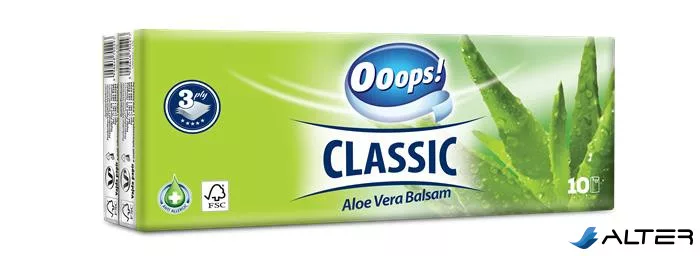 Papír zsebkendő, 3 rétegű, 10x10 db, OOOPS "Classic", aloe vera
