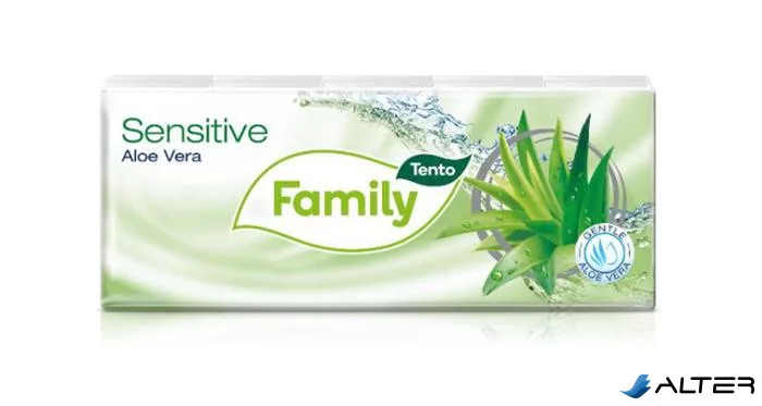 Papír zsebkendő, 3 rétegű, 10x10 db, TENTO 'Family', aloe vera