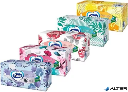 Zewa Deluxe Design 3 rétegű illatmentes dobozos papír zsebkendő 5 különböző, természet ihlette dizájnban.