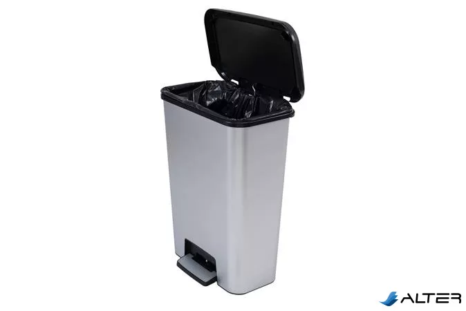 Pedálos szemetes, téglalap alakú, 50 l, CURVER "Compatta", fekete-ezüst