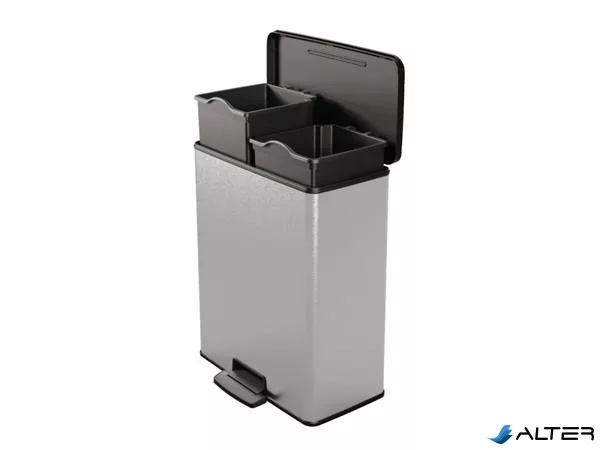 Pedálos szemetes, újrahasznosított műanyag, kivehető vödörrel, 2x26 l, CURVER "Deco bin duo", fekete/ezüst