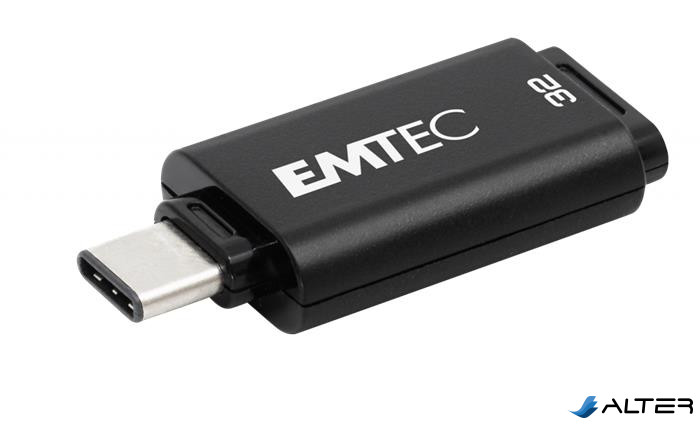 Pendrive, 32GB, USB-C 3.2, EMTEC 'D400 Type-C', fekete