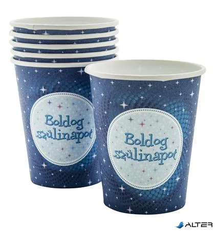Pohár, papír, 'Boldog Születésnapot', kék