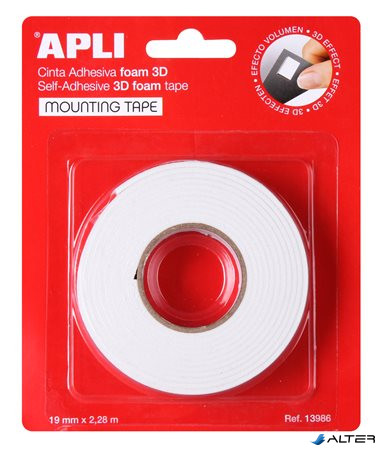 Ragasztó tekercs, 3D, kétoldalas, szivacs, APLI, 19 mm x 2,28 m, fehér