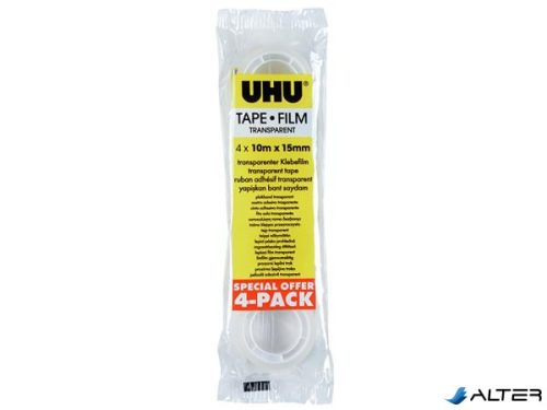 Ragasztószalag, 15 mm x 10 m, 4 db, UHU, átlátszó