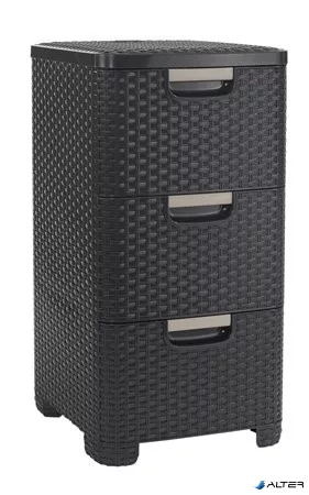 Rattan hatású fiókos tároló, 3x14 l, sötét barna, CURVER