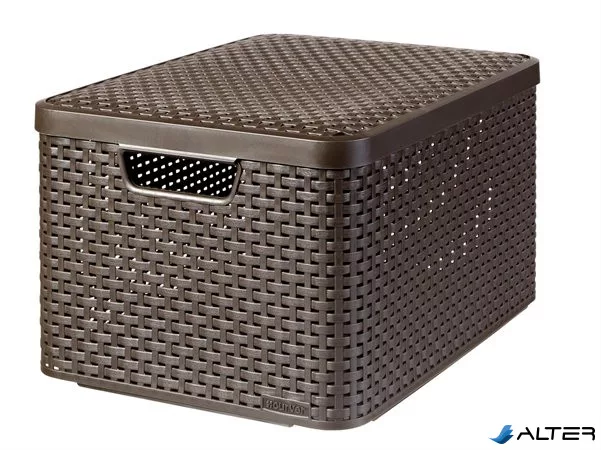 Rattan hatású kosár tetővel, 30l, sötétbarna, CURVER "Style L"