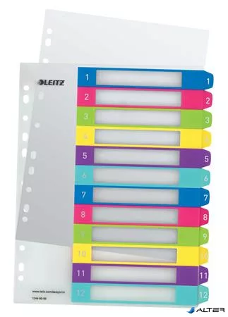 Regiszter, műanyag, A4 Maxi, 1-12, LEITZ "Wow"