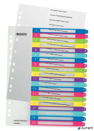 Regiszter, műanyag, A4 Maxi, 1-20, LEITZ "Wow"