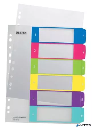 Regiszter, műanyag, A4 Maxi, 1-6, LEITZ "Wow"