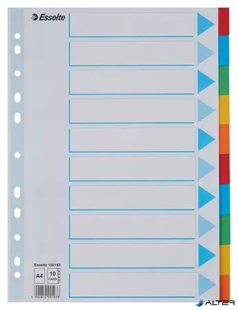 Regiszter, karton, A4, 10 részes, írható előlappal, ESSELTE "Standard", színes