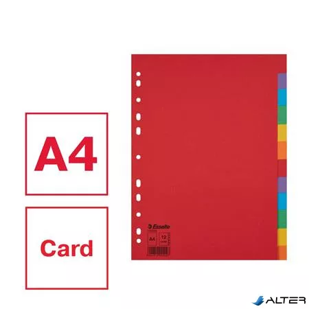 Regiszter, karton, A4, 12 részes, ESSELTE "Economy", színes