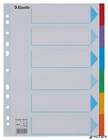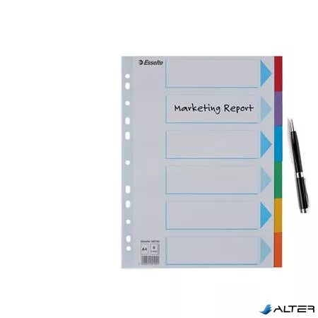 Regiszter, karton, A4, 6 részes, írható előlappal, ESSELTE "Standard", színes