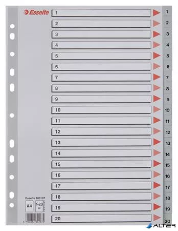 Regiszter, műanyag, A4, 1-20, ESSELTE, szürke