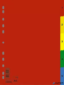 Regiszter, műanyag, A4, 1-5, DONAU, színes