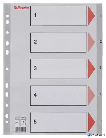 Regiszter, műanyag, A4, 1-5, ESSELTE, szürke