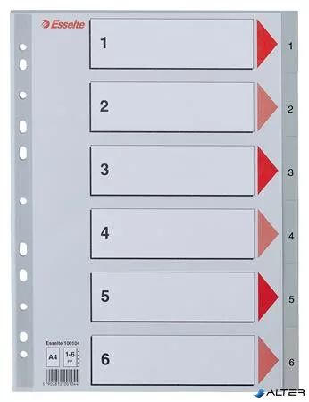 Regiszter, műanyag, A4, 1-6, ESSELTE, szürke